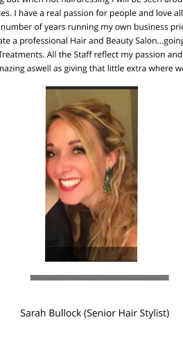 Sarah Bullock (Senior Hair Stylist) Joined in 2017 - Sarah has a wealth of hairdressing experience having